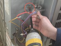 Find a new capacitor that matches the size of the old capacitor. (Ex: 45/5 or 70/10)