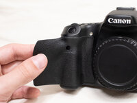 Using the plastic spudger tool, peel back the rubber grip on the right side of the camera to expose the screws.