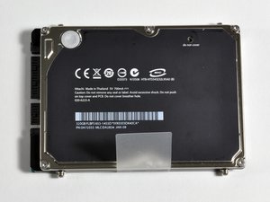 To remove the hard drive, unscrew the two small Phillips screws holding the black plastic hard drive bracket to the chassis. Pull up on the white plastic tab and lift the hard drive out of the case, being careful not to strain the SATA cable.