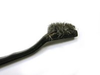 Second, place the plastic guard on the end of the valve with the flat side facing out.
