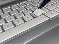 Place a flat object, like an iFixit opening tool in this case, under the broken key and lift upwards to remove it.