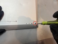 Using a T5 Torx screwdriver, take out the one 4.3mm screw located in the central bottom area of the back cover.