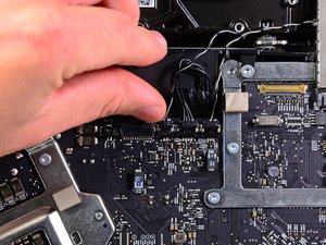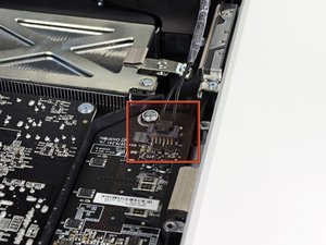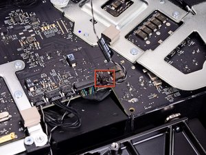 Pull the hard drive temperature sensor connector toward the top edge of the iMac to disconnect it from its socket on the logic board.