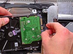 I found when replacing hard drive the most difficult task is to replug the Display data cable back into the logic board. There is just so little room to work, I damaged the data cable plug contacts and the display would not work. For me work around was to order replacement data cable and install first on logic board before trying to mount and connect other display cables. And installing data cable to Display socket last. This end is larger and more robust up near the top edge of the Display giving one much more room to work.