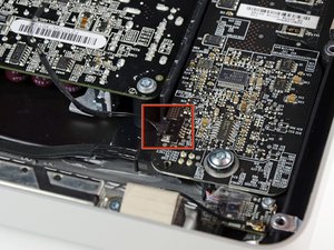 Pull the vertical sync cable connector out of its socket on the LED driver board near the top left corner of your iMac.