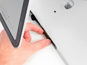 Loosen the three Phillips screws securing the access door to the bottom edge of your iMac.