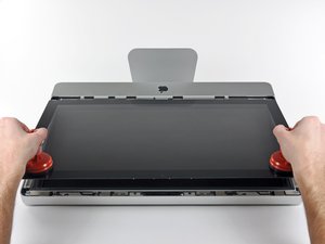 Carefully pull the display toward the top edge of your iMac and lift it out of the outer case, minding any cables that may get caught.