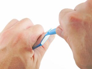 Slide the second iPod opening tool toward the bottom of the device to remove the adhesive.