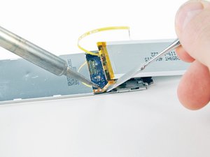 Once the three connections have been desoldered, lift the old battery off the logic board.