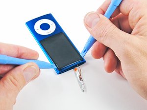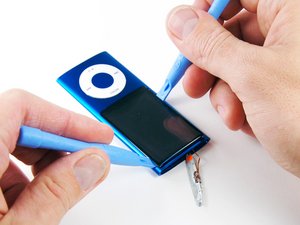 Insert a metal spudger into the slot at the bottom of the iPod just above the dock connector.