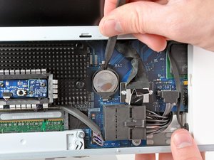 Use the tip of a spudger to pry the PRAM battery out of its socket on the logic board.