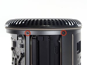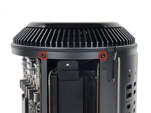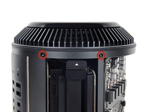 Remove the two 6.6 mm T9 Torx Security screws securing the GPU to the Mac Pro.