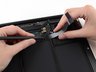 Slide the flat end of a spudger under the right speaker from the end nearest the hinge to the front edge of the Air to loosen the adhesive.