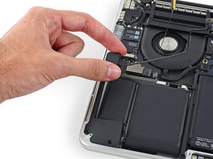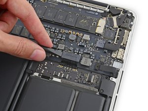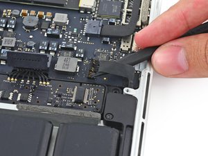 Use the flat end of a spudger to lift the battery connector straight up out of its socket on the logic board.