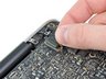 Use your fingernail or the tip of a spudger to flip up the cable retaining flap on the ZIF socket for the keyboard ribbon cable.