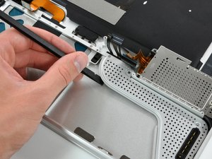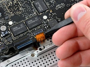 Using the tip of a spudger, flip up the keyboard ribbon cable retaining flap.