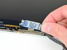 Carefully pull the camera cable connector toward the right side of the display and out of its socket on the AirPort card.