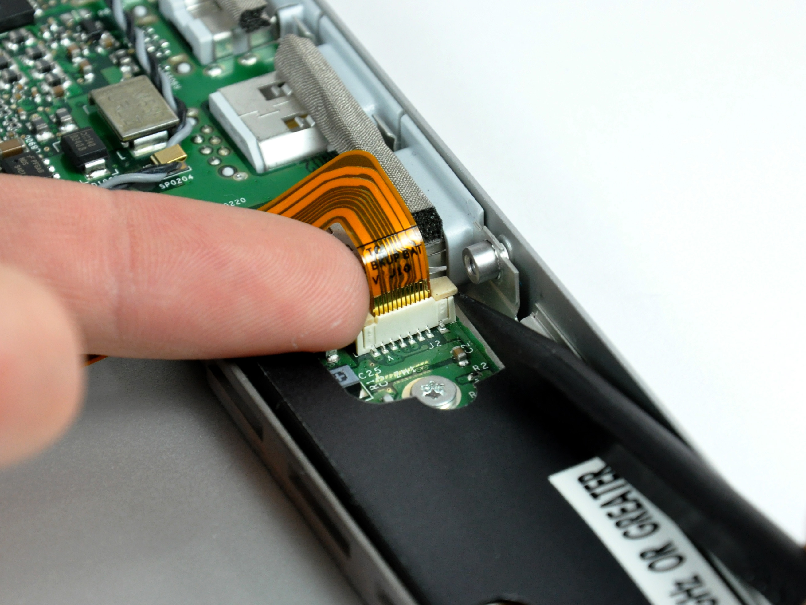 Use your fingernail and the tip of a spudger to raise the ZIF cable lock slightly up off its socket.