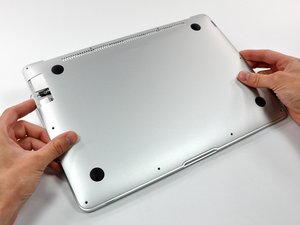 Slightly lift the lower case near the vents and push it toward the rear of the computer to free the mounting tabs.