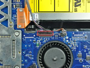 Disconnect the optical drive fan from the logic board.