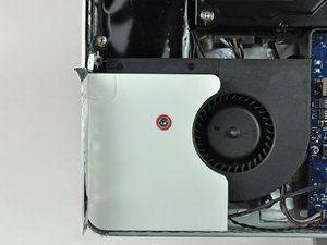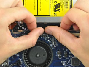 Disconnect the hard drive fan by pulling its connector away from the face of the logic board.