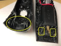 Remove the two 11.0 mm PH00 screws from the black plastic housing at the bottom of the device.