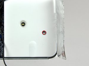 Peel back the aluminum EMI shield up off the lower three edges of the rear case.