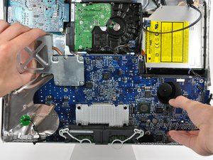 Grab the logic board and pull it toward yourself slightly to separate the jacks from the rear case.