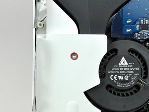 Disconnect the hard drive fan connector from the logic board by pulling it straight away from its socket.