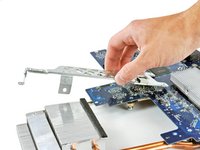 Remove the 6.1 mm T8 Torx screw from both sides of the heat sink nearest the logic board (two screws total).