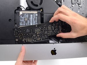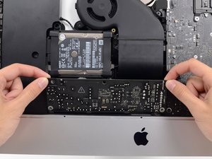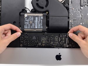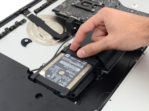 Lift the hard drive from the edge nearest the logic board and pull it slightly out of its recess.