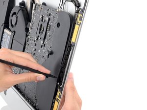 Push on each side of the left speaker cable connector with the tip of a spudger and gently "walk" it out of its socket.