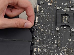 Gently pull the fan cable connector straight away from its socket on the logic board.