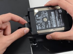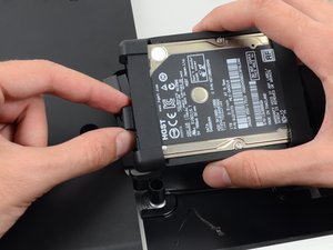 Remove the single 7.2 mm T10 screw securing the hard drive tray to the rear enclosure.