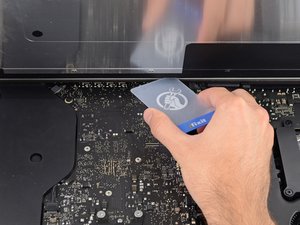 I used the iMac Opening Tool just as shown starting in step 2 to separate the tape. DISASTER! The screen cracked! I used the tool slowly and carefully and despite this, the screen cracked. I should have simply used a guitar pick. That said, I decided to see if I could upgrade the 8GB RAM to 16GB RAM WITHOUT removing the logic board all performing all of these steps. I found I could simply remove the FAN assembly as shown in step 43. This makes enough room to reach behind the logic board and unclip the 2 memory modules. I installed 2 8GB modules (1600MHz DDR3L SO-DIMM PC12800 204 Pin) without much trouble. I used a plastic stick to reach behind the logic board and unclip the existing memory modules, then carefully inserted the new ones and clipped them into place. This is much easier than performing all of these steps.