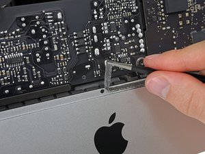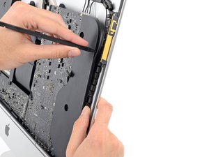 Use a spudger to loosen the right speaker cable's connector from its socket on the logic board.