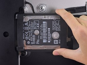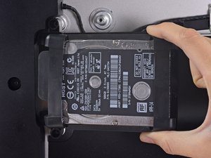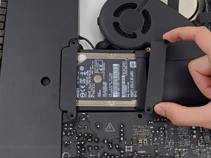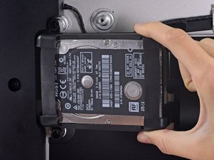 Lift the hard drive from the edge nearest the logic board and pull it slightly out of its recess.