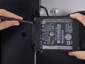 Peel the rubber hard drive bumpers up off the top and bottom edges of the hard drive.