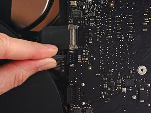 Carefully pull the display data cable from its socket on the logic board.