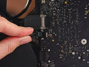 Gently pull the fan cable connector straight away from its socket on the logic board.