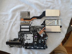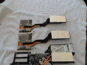 In the second photo you can see the replacement graphics card (Apple part #661-5135) I got from Impact Computers in Florida. It's a drop-in replacement. Even the adhesive foam and thermal sensor are already in place. In fact, you better not turn your back or you may forget which is which!