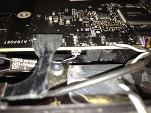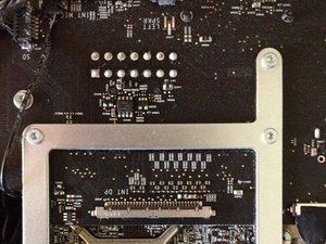 *Use Hemostats or tweezers when it comes time to remove the graphics card temperature sensor cable from underneath the motherboard make sure you grab it by the top and bottom of the plug and not from the sides. For example if your pinching at the plug make sure your thumb is on top and other finger is on the bottom, not from the sides! Look at your imac like your using it and either hold the unattached heat heat sink/GPU in your left hand while you reach around the back and behind the mother board to find the temp sensor. I used a pair of hemostats and pulled the plug by the top and bottom and it pulled right out.