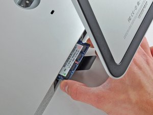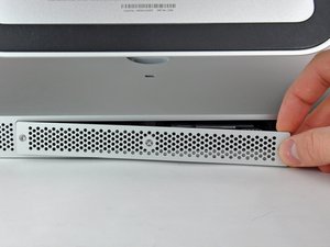 Loosen the three Phillips screws securing the access door to the bottom edge of your iMac.