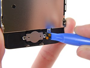 Peel the home button the rest of the way off of the display by prying gently with a spudger.