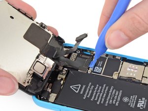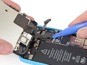 When reassembling the iPhone 5c, I used the flat end of the spudger to press on the connectors and maintain them while replacing the front panel on the body of the iPhone.