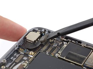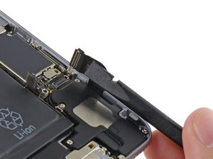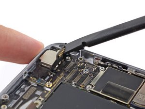 Use the flat end of a spudger to disconnect the Lightning connector assembly cable and fold it out of the way of the speaker.
