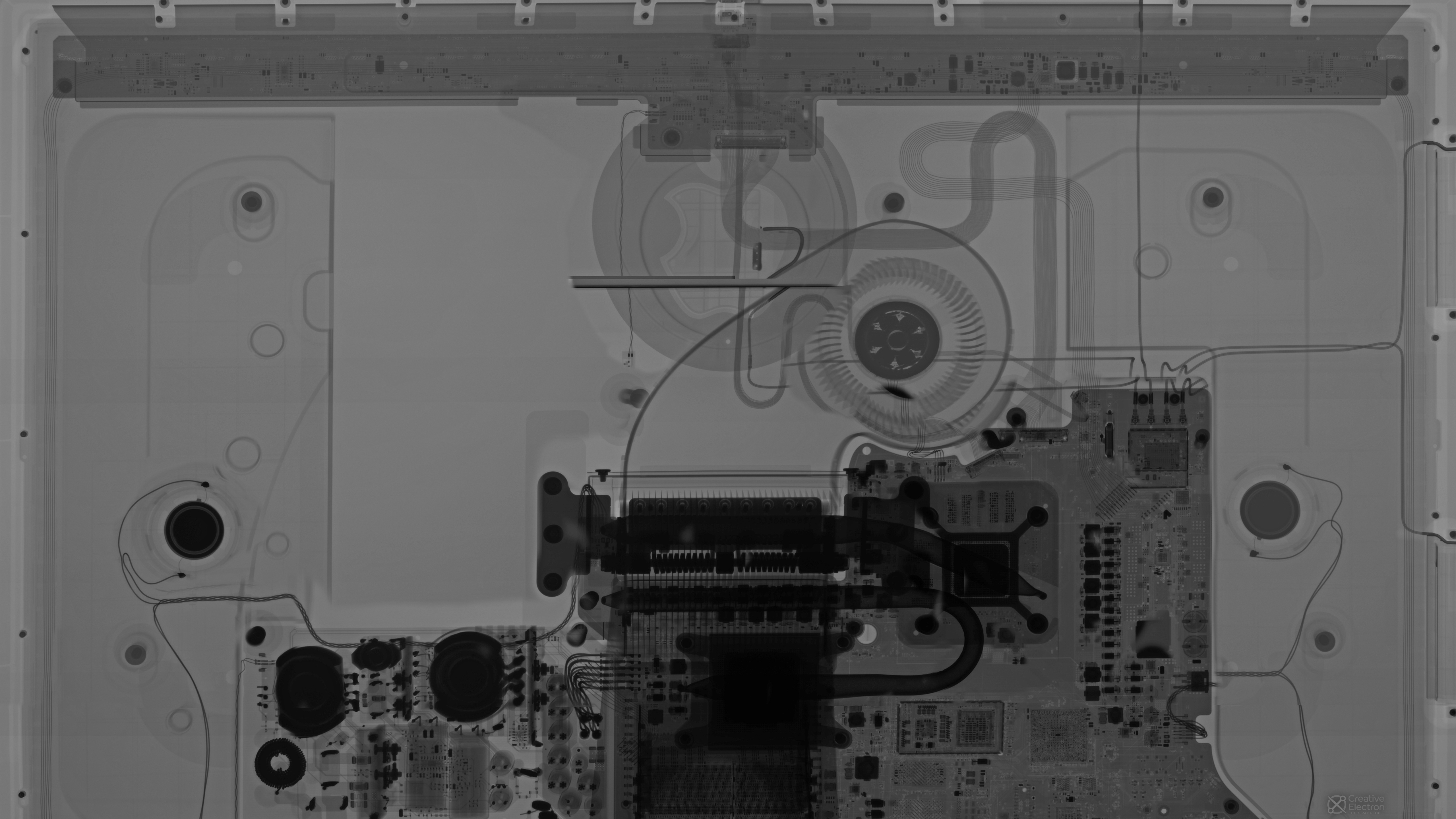 We discovered some interesting things in our teardown of the new 5K, Retina Display iMac, like new mics and webcams. We also found some sad things, like soldered-on, non-upgrade-friendly storage. And a slot where a traditional spinning-disc hard drive should be, but now there’s … nothing! You can see exactly what we mean, right behind your work, with these iMac wallpapers. We’re quite beholden to the X-ray wizards at Creative Electron for managing to get a single see-through shot of this big computer, using some combination of ingenuity and magic.