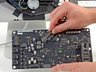 A few more T10 Torx screws bite the dust at the hand of our bit driver kit, and the logic board is detached.