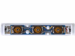 The underside of the remote cover reveals three buttons and a microphone. No surprise here, as the remote has three buttons.