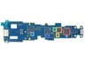 Next out: the midframe that housed the motherboard. Clinging to its side we find a small ribbon cable that plays host to the headset button.